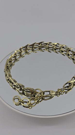 Chain link necklace is interwoven with bioorganic vertebrae connected in a seamless sequence. Its elaborate design gives off a three-dimensional aesthetic. Each vertebra is individually cast and hinged together to allow flexible articulation that aligns intuitively with your body. Oxidized to emphasize every detail and accentuate its sculptural features.